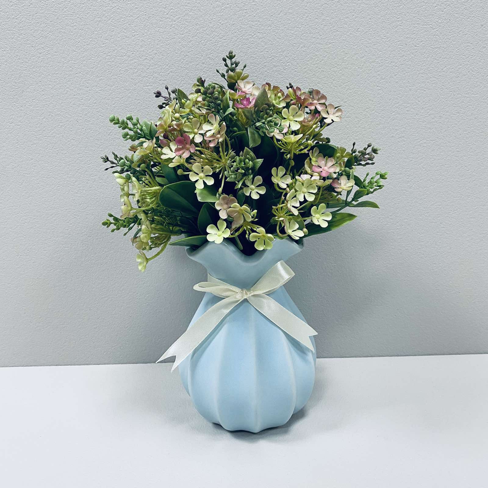 Ваза керамічна для квітів 17 см Viva Perl A060250 блакитна Характеристика: Вид: Ваза Матеріал: Кераміка Висота: 17 см Призначення: Для квітів Колір: Блакитний Діаметр: 10,5 см, дна – 7 см