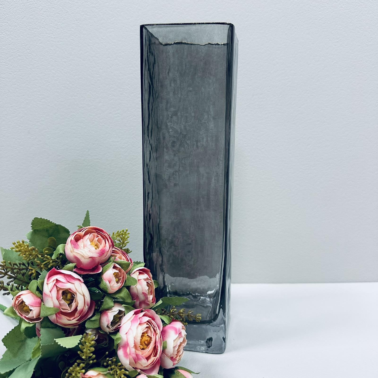Ваза скляна для квітів Stenson R95315 Emerald 29,5 см Сірий (23468)