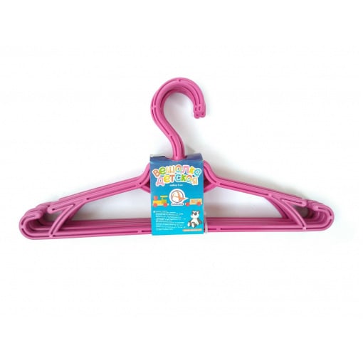 Пластикова вішалка - це аналог дерев'яного пристосування, який відрізняється тільки ціною. Зазвичай вішалка із пластику має ціну в 5-10 разів нижчу, ніж дерев'яна або металева, при цьому функціонал пластикового виробу нічим не поступається. Зроблено вішалку з якісного зносостійкого поліпропілену. Матеріал дуже легкий та пластичний, але при цьому міцний – вішалка може витримувати важкі речі. Форма вішалки класична. В асортименті представлені моделі з шириною плічок від 33,5 до 44,5 см. Вішалка для одягу дитяча 5 шт рожевий Алеана 121074