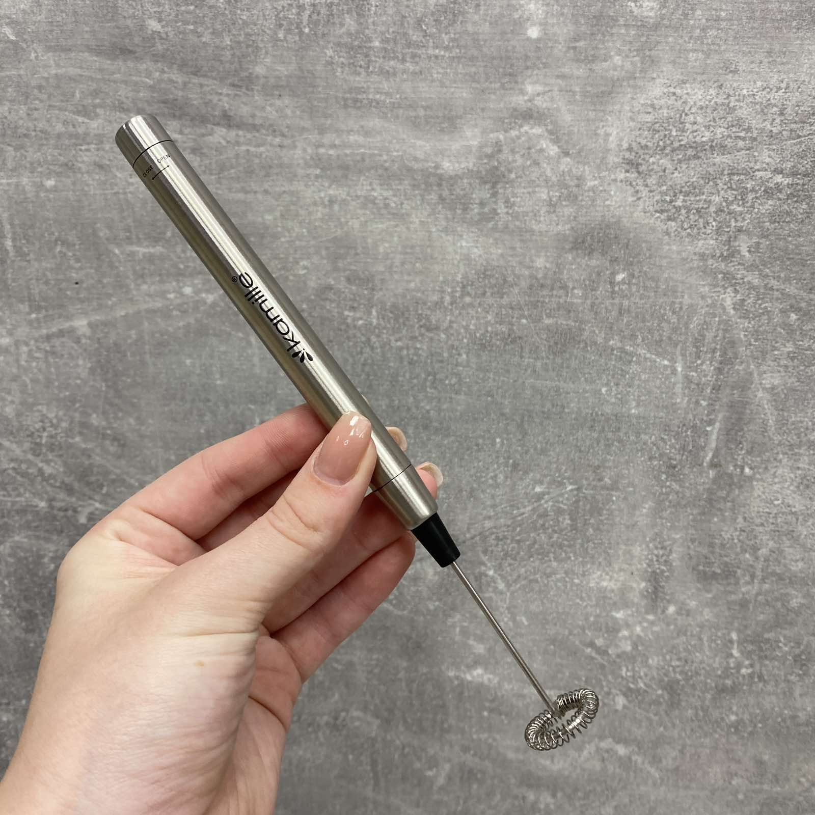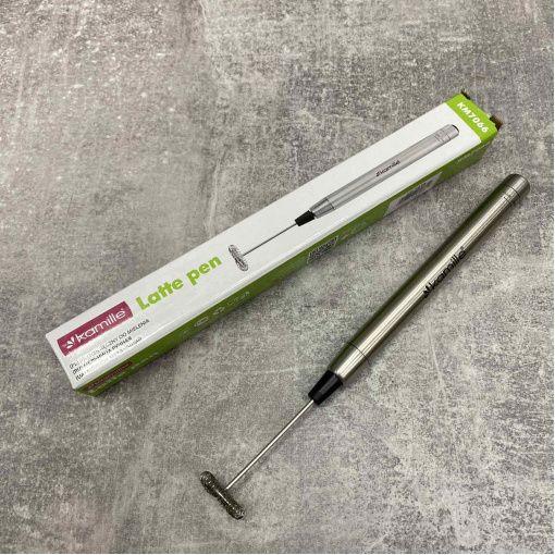 Спінювач Kamille KM-7066 відноситься до ручного типу. Живлення проводиться за рахунок батарейки. Він портативний, що легко піддається маніпуляціям, а його мобільність дозволяє завжди бути під рукою. Занурюєте спінювач у ємність із підігрітим молоком, і всього за кілька секунд молочна піна готова. Спінювач Kamille KM-7066 виготовлений з нержавіючої сталі. Загалом модель має приємний дизайн та не займає багато кухонного простору.