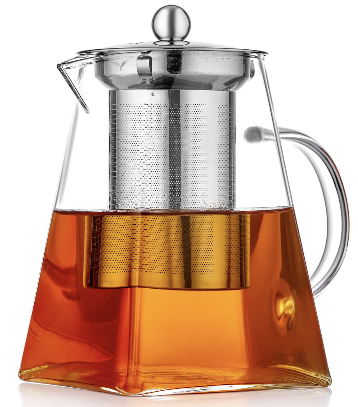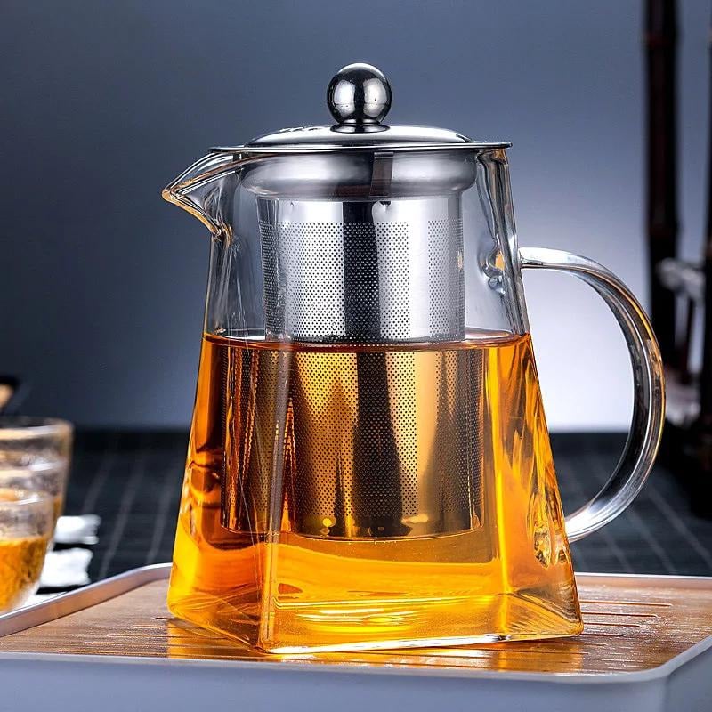 Заварювальний чайник виготовлений із загартованого скла, яке здатне витримувати високі температури. Ситечко виготовлено з нержавіючої сталі, що значно збільшує його термін служби та якість вашого напою, порівняно із вставками із металевого дроту. Зручний пристрій для швидкого приготування чаю - заварного, трав'яного, зі шматочками фруктів.