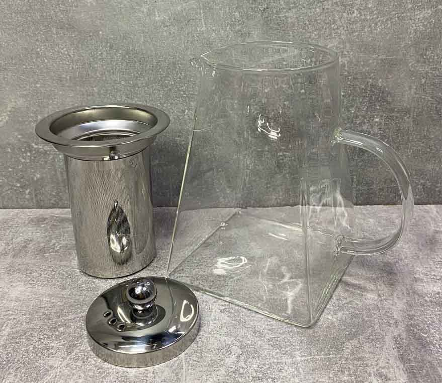 Заварювальний чайник виготовлений з боросилікатного скла, яке здатне витримувати високі температури. Ситечко виготовлено з нержавіючої сталі, що значно збільшує його термін служби та якість вашого напою, порівняно із вставками із металевого дроту. Зручний пристрій для швидкого приготування чаю - заварного, трав'яного, зі шматочками фруктів.